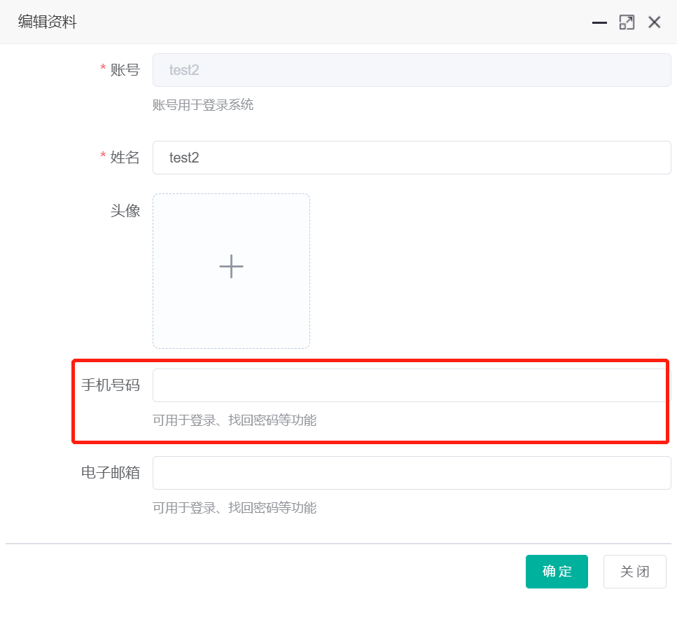 在手机号码一项填入此用户登录时需要用到的手机号码。