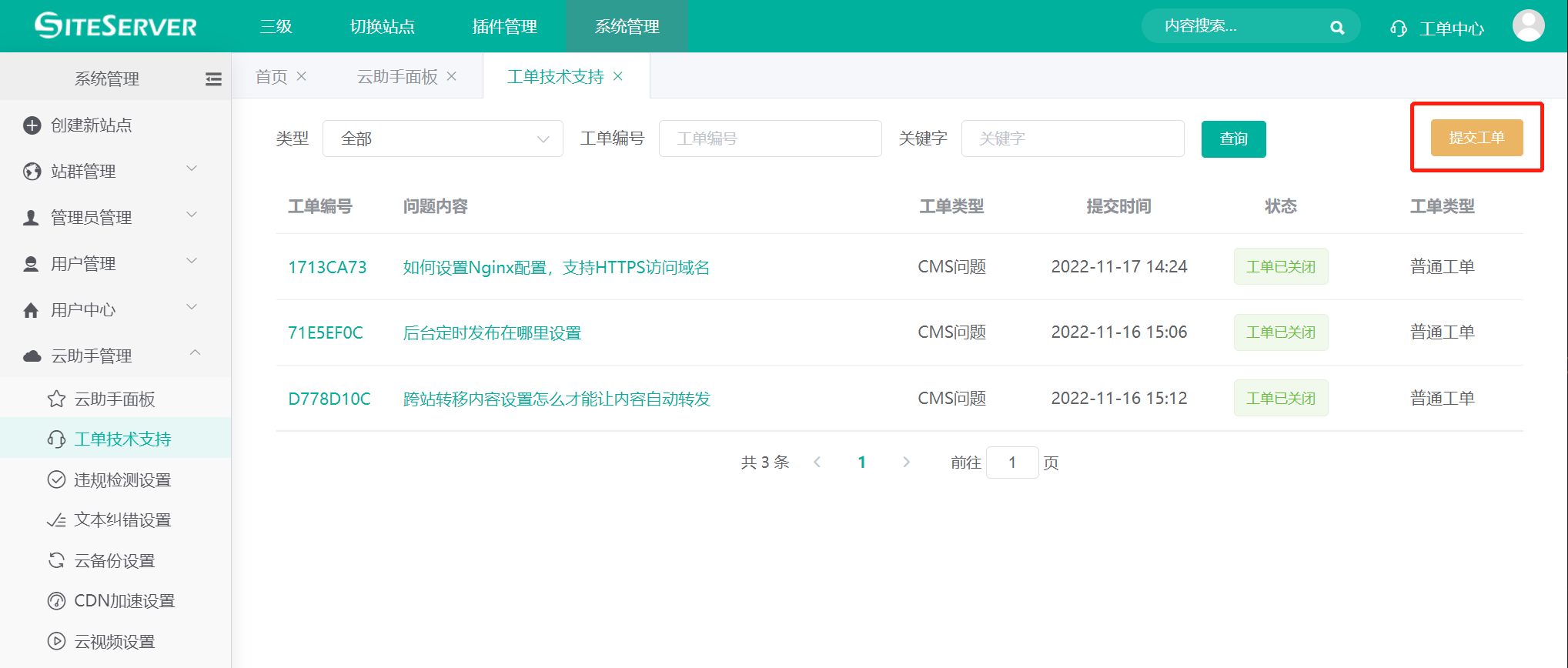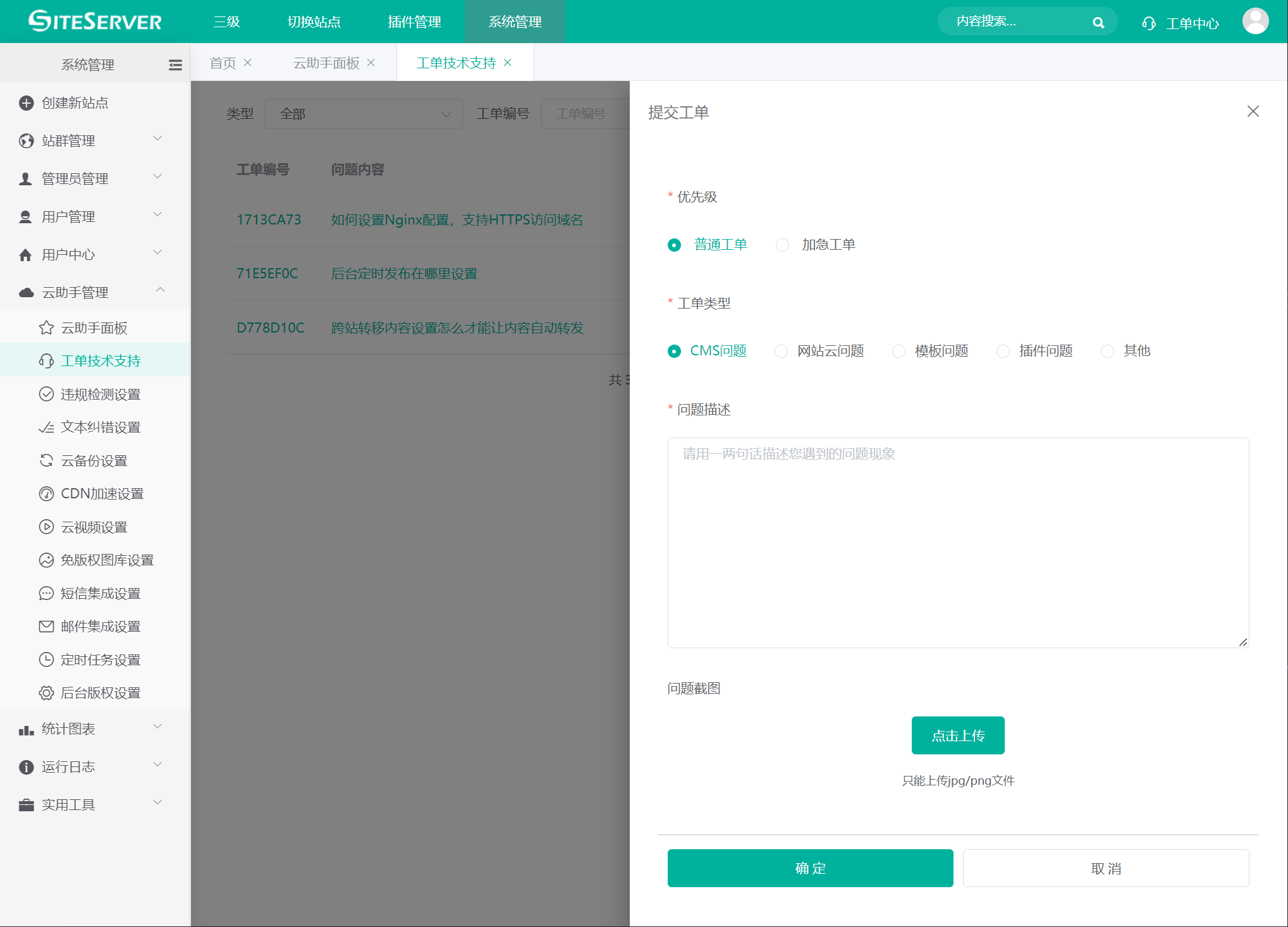 通过云助手工单技术支持,SSCMS 将为您提供专属技术保障通道,专业高效,安全无忧。