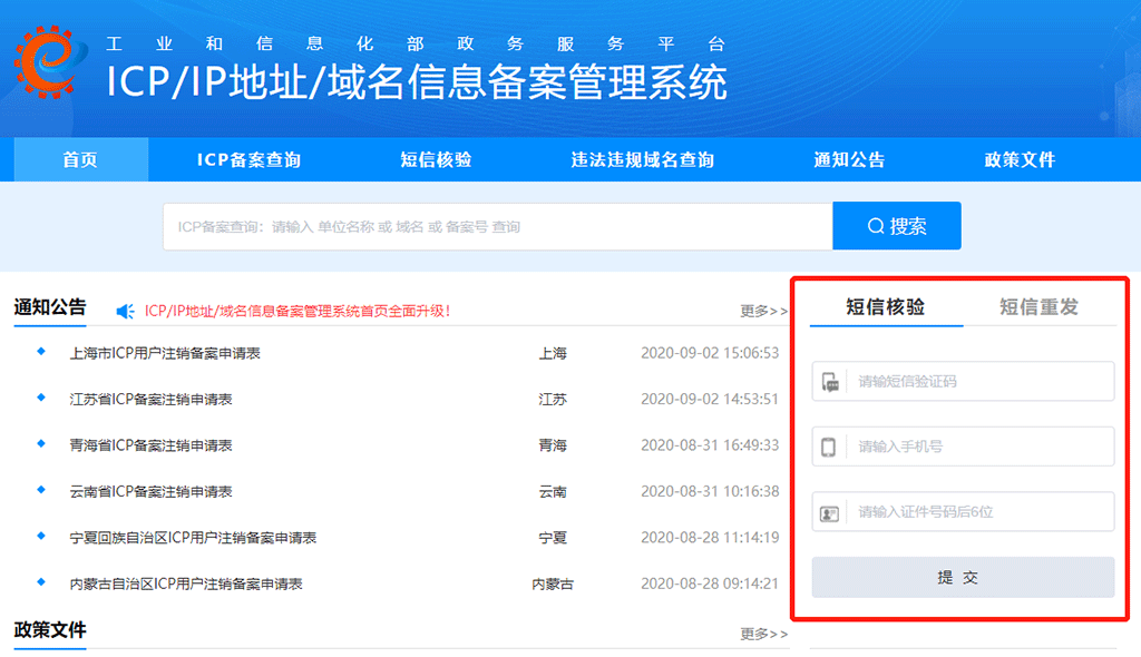 核验短信后,备案申请才能进入管局审核。 在填写主体或网站信息时需要提供联系方式,其中联系方式1的手机号码会收到工信部发出的验证码。收到后在24小时内容登录工信部备案管理系统 (opens new window)完成短信核验。 相关文档:短信核验FAQ (opens new window)