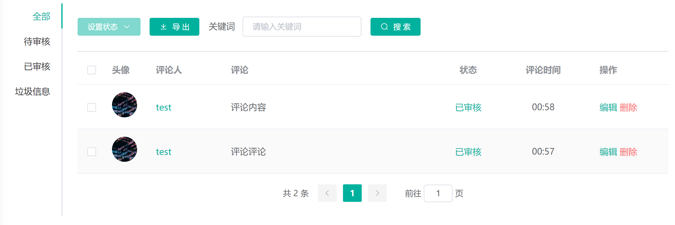 - 默认审核状态 设置评论后是否需要管理员进行审核,如果设置为已审核,前台用户提交评论后将直接在页面中显示;