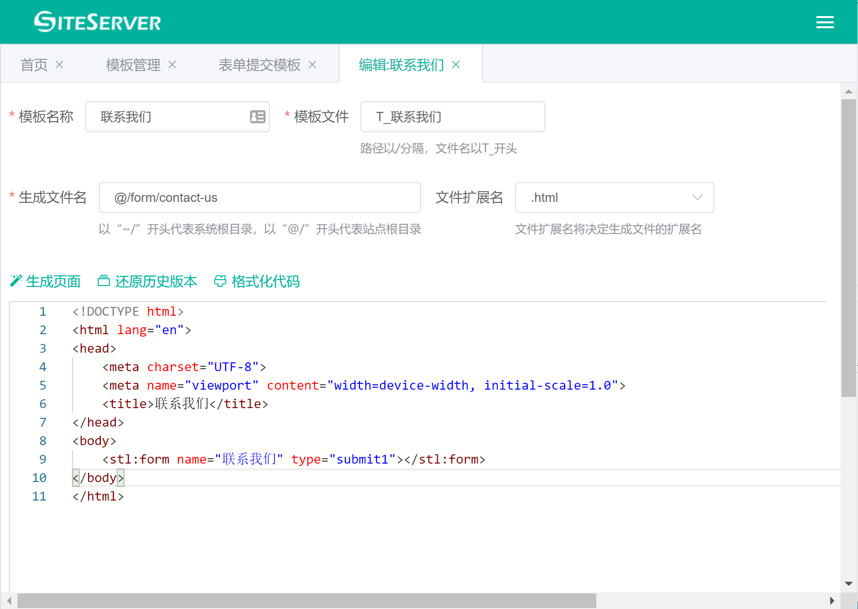 其中 <stl:form> 标签用于显示表单提交界面,name 属性指定表单名称,type 属性指定表单提交样式。