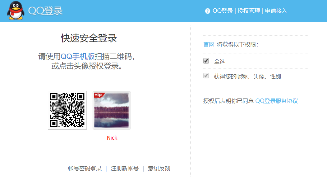 新浪微博登录首先需要配置第三方登录参数,请参考: