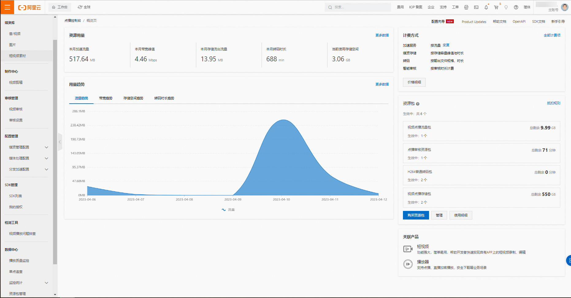 4、开通完成后,即可进入VOD控制台概览页面,开始使用点播服务: