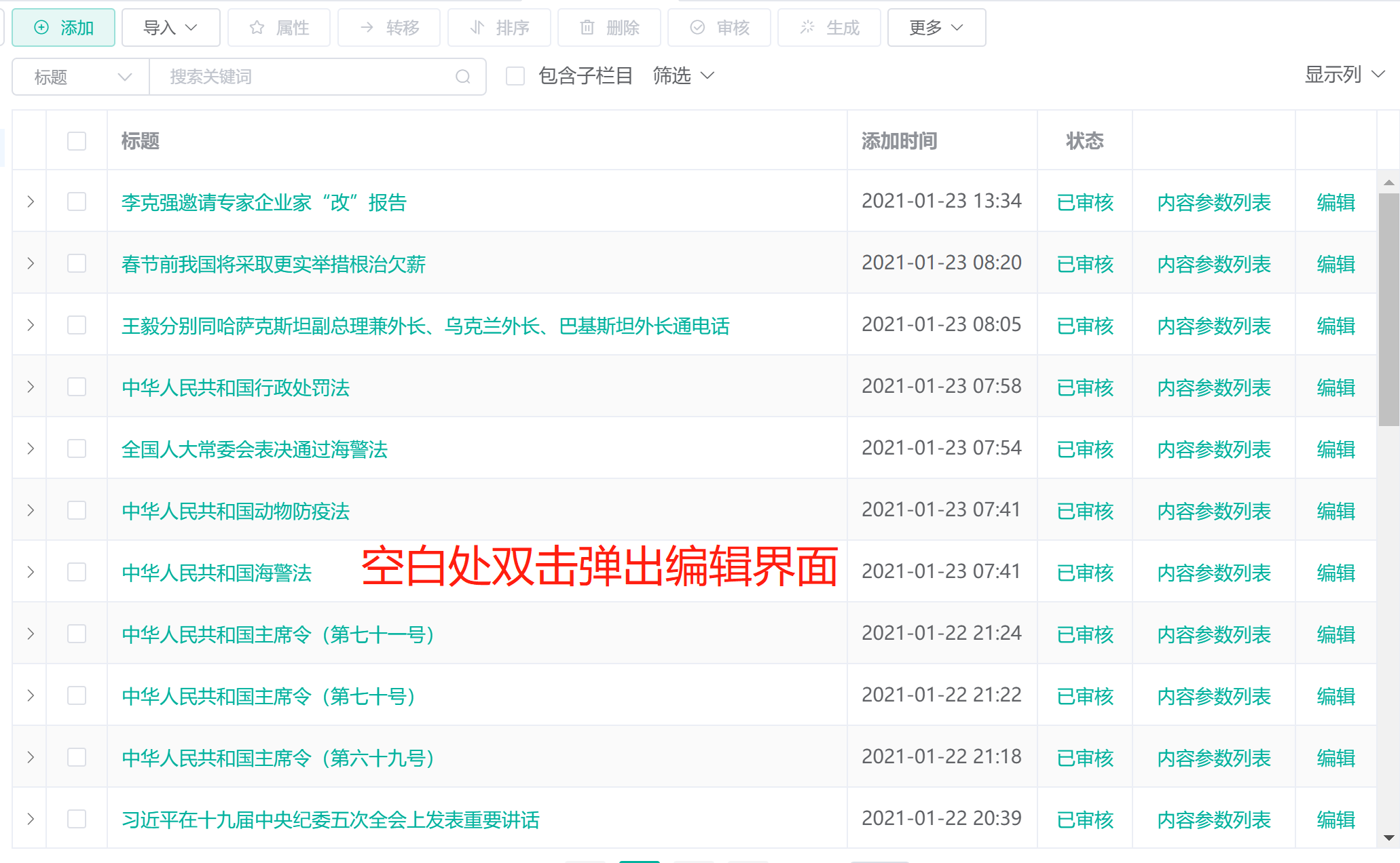 - 优化后台使用体验 - 实现内容列表以及栏目列表双击弹出编辑页面功能。