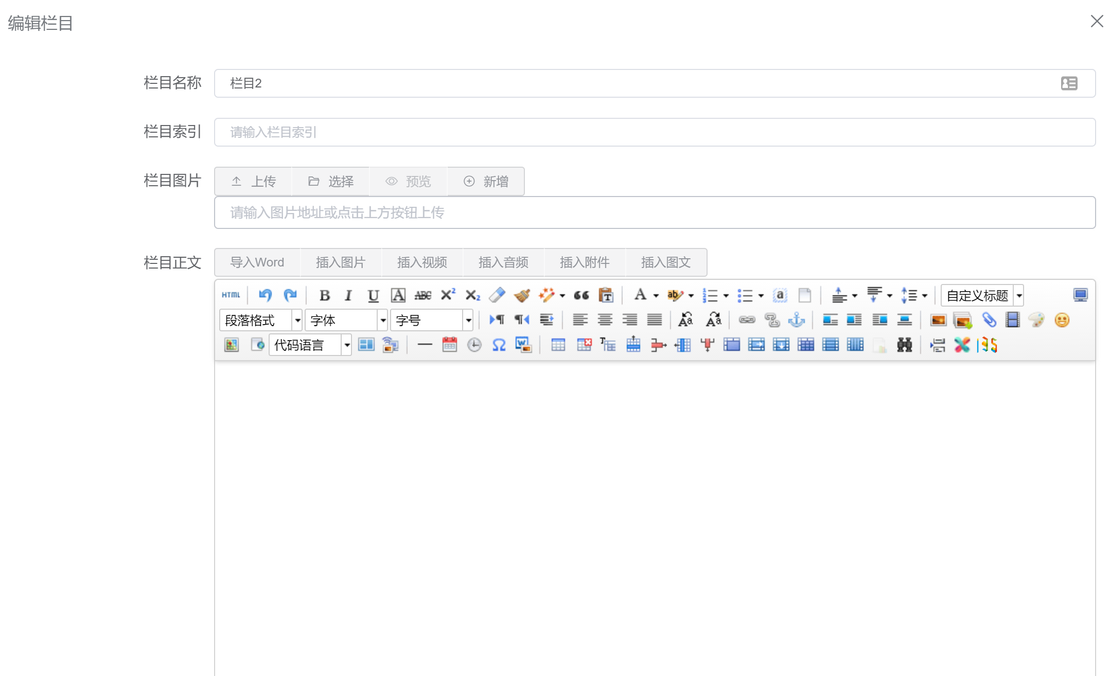 - 更换栏目编辑界面富文本编辑器