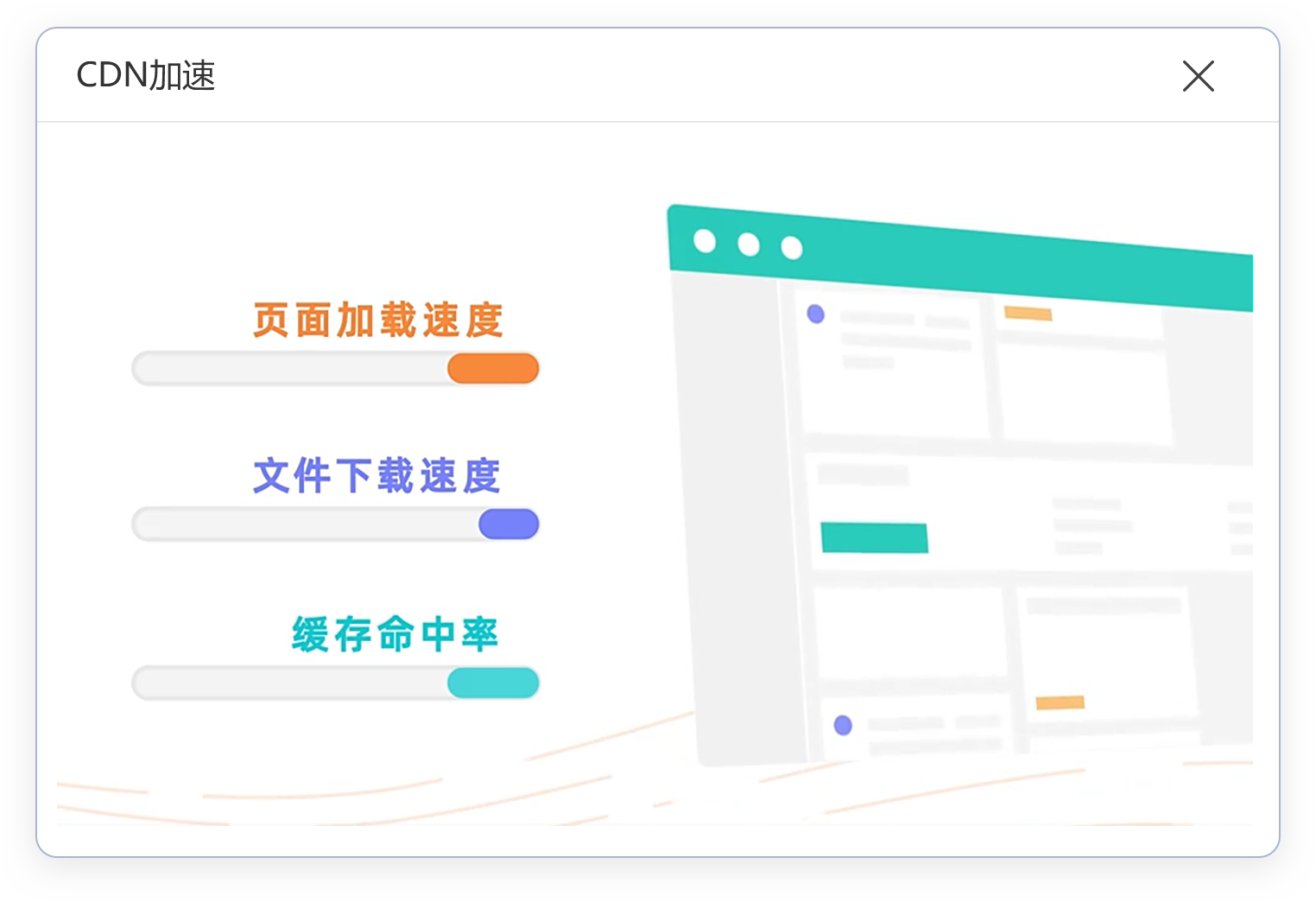CDN加速把站点内的图片和静态文件(如附件、CSS和JavaScript)同步至极速CDN网络中,使得页面加载速度大大加快。