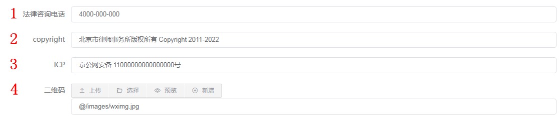 使用 Farai 模板创建站点后,我们需要将站点名称、LOGO、联系方式、copyright、ICP备案号、二维码信息替换为正式数据。