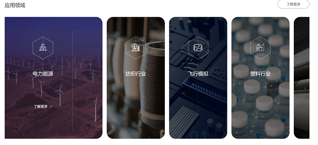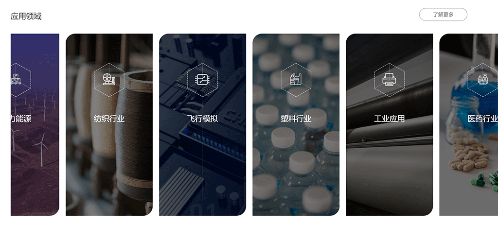 栏目名称对应首页应用领域下的名称,第一幅图片对应应用领域的背景图片,第二幅图片对应应用领域的小图标: