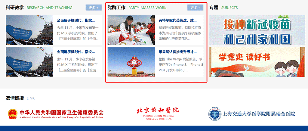 首页党群工作显示位置如下图: