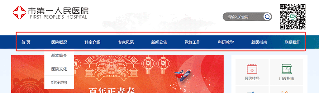 导航栏在页面的头部和尾部均有显示,Krystal 模板中头部导航如下图: