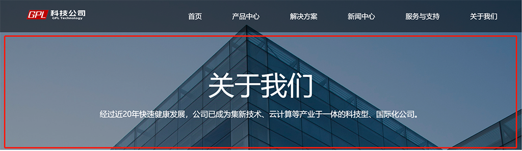 点击进入栏目页或内容页后,我们将看到顶部导航下面的BANNER图片,如下图: