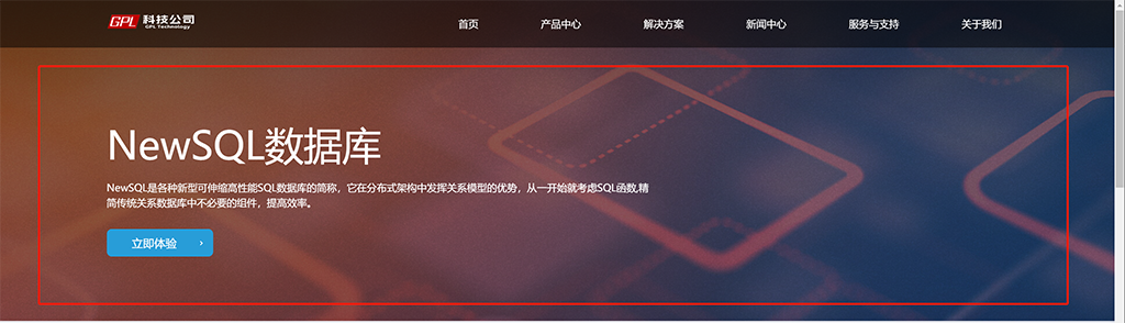 进入产品栏目页面后,页面BANNER部分将显示产品图文介绍以及 立即体验 按钮,如下图: