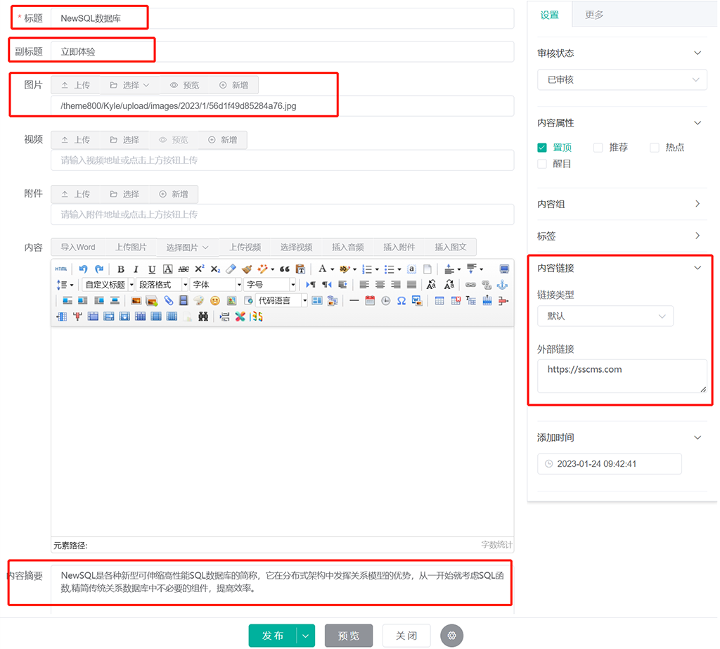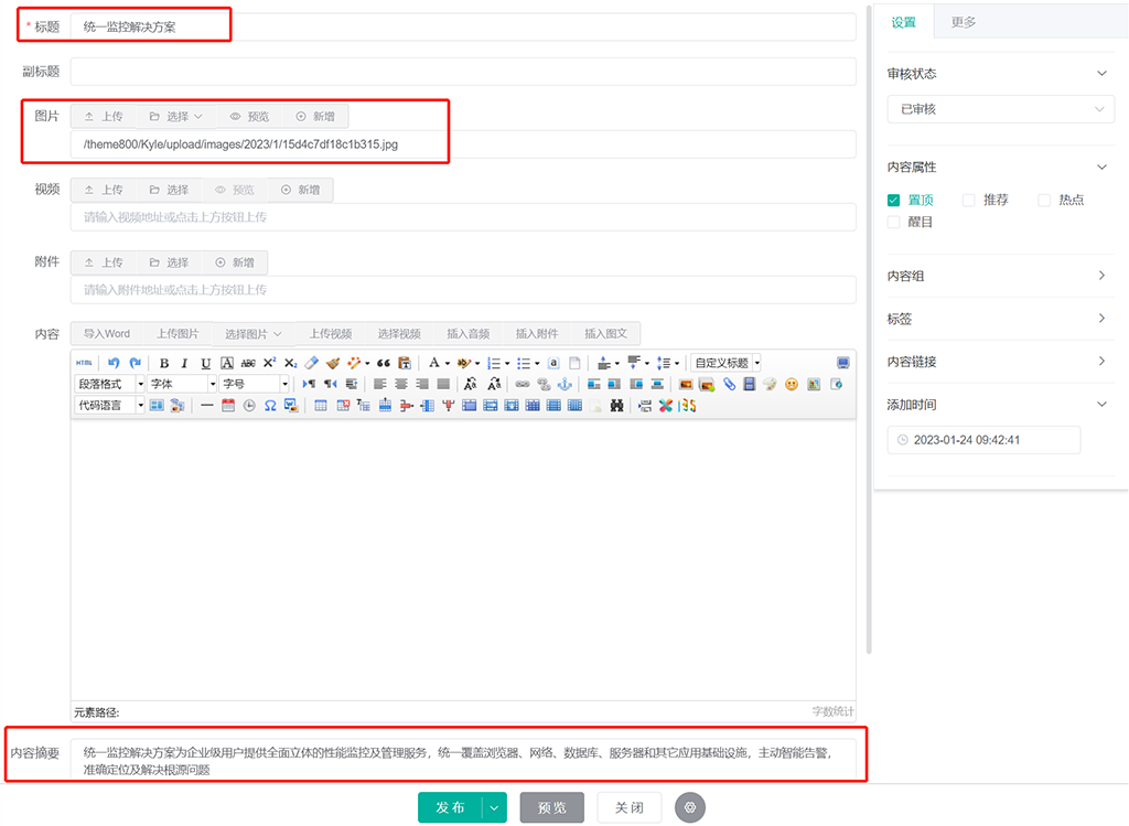 在此修改内容标题、图片以及内容摘要,修改完成后需要重新生成页面,刷新浏览器即可看到BANNER区域变化。