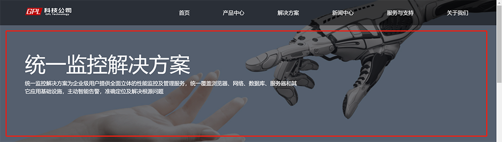 进入解决方案栏目页面后,页面BANNER部分将显示解决方案图文介绍,如下图: