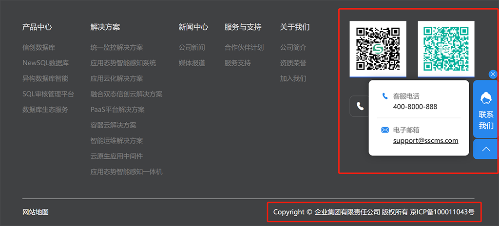 # 页面底部信息