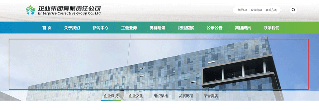 点击进入栏目页或内容页后,我们将看到顶部导航下面的BANNER图片,如下图: