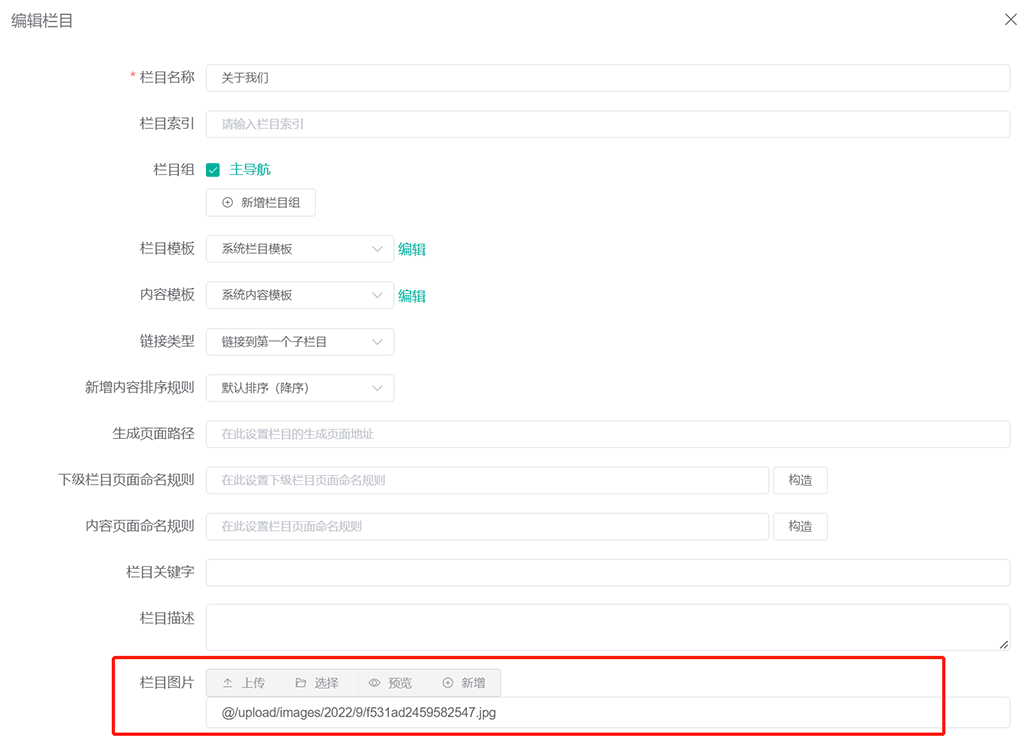 编辑栏目图片将修改栏目及内容页上方的BANNER图片。