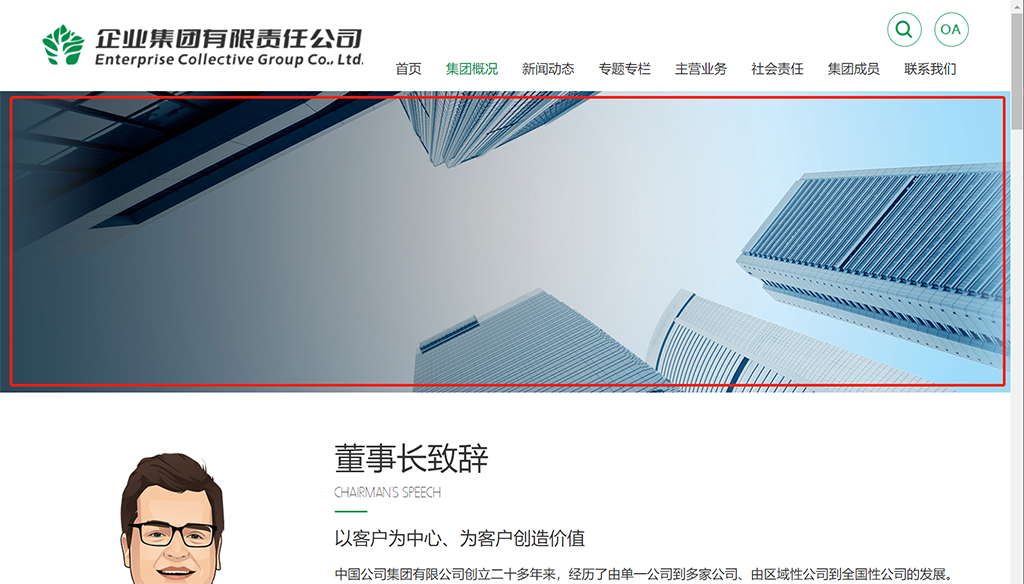 点击进入栏目页或内容页后,我们将看到顶部导航下面的BANNER图片,如下图: