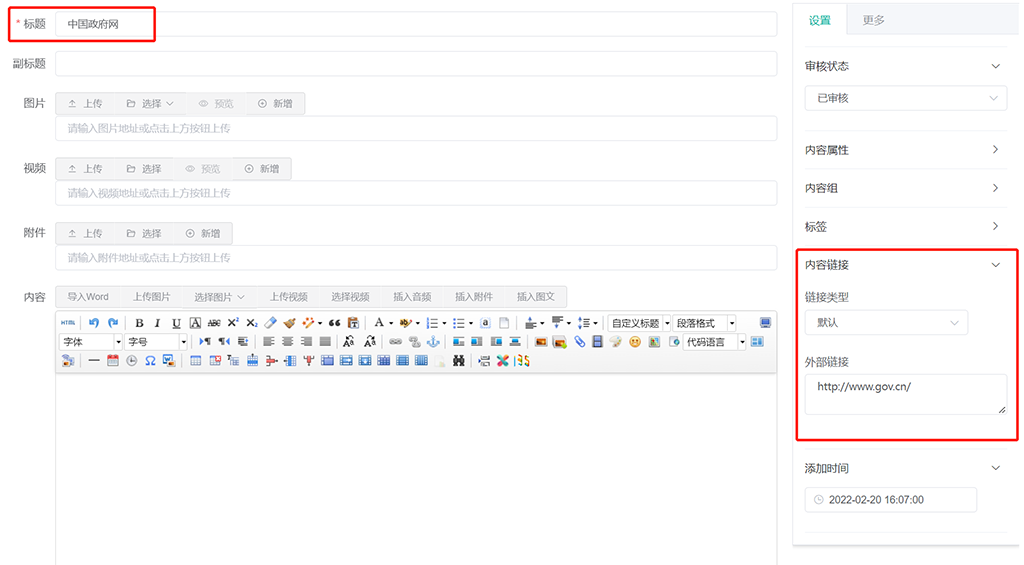 在此可以编辑或者新增内容,点击内容右侧的 编辑 按钮,进入编辑界面: