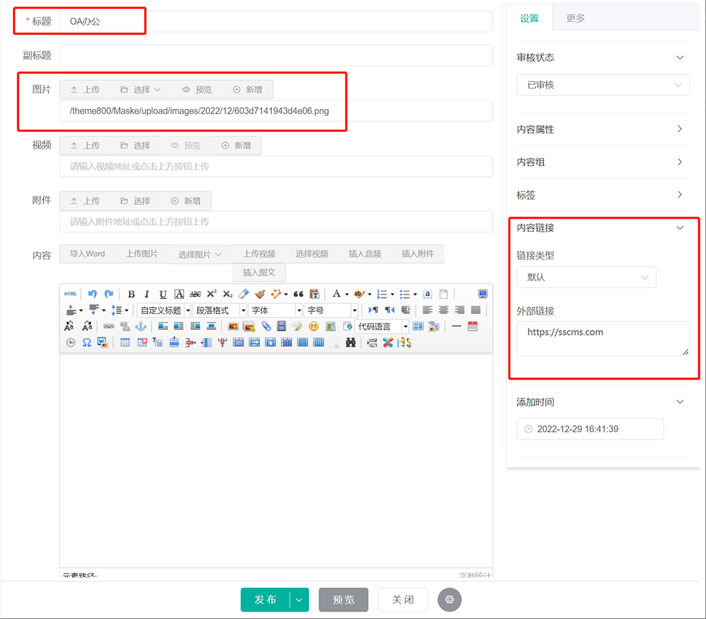 我们可以新增或者编辑内容,点击内容右侧的 编辑 按钮,进入编辑界面: