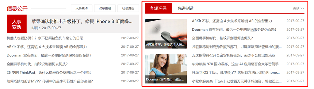 产业领域下的子栏目可以根据需求修改名称或者新增删除。