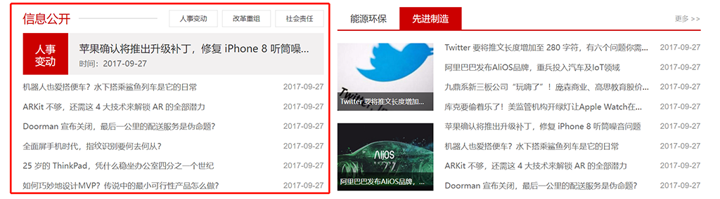 信息公开下的子栏目可以根据需求修改名称或者新增删除,每个子栏目均有对应的内容列表,其中有部分内容需要设置为 推荐(管理界面中标题右侧将显示星形标志),只有推荐的内容将显示在首页。