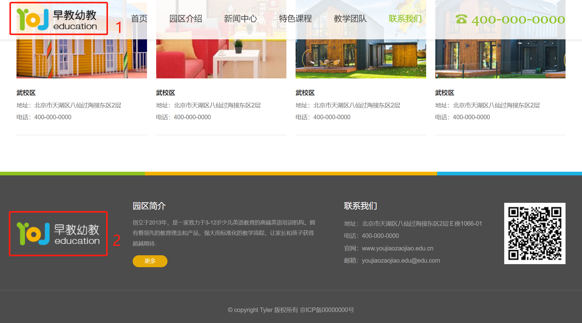 站点图片/LOGO需要上传两幅图片,分别对应页面头部LOGO以及底部LOGO位置: