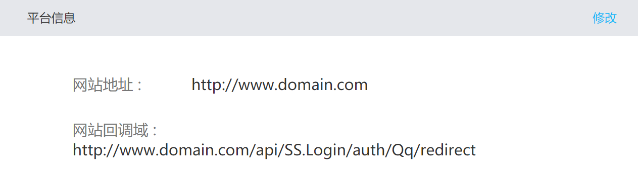 如:http://www.domain.com/api/SS.Login/auth/Qq/redirect