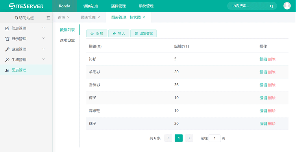 进入 图表管理 菜单并点击上一步中创建的图表名称,进入数据列表管理界面: