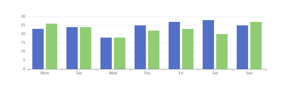 我们可以用一个系列表示一组相关的数据,图表插件默认使用单系列,单系列与多系列图表示例如下: