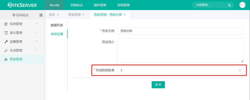 进入 图表管理 菜单并点击图表名称,进入 选项设置 管理界面: